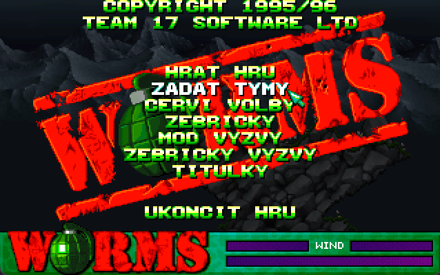 Game with fighting Worms, first DOS version, in Czech. Works with GOG and Steam release.
