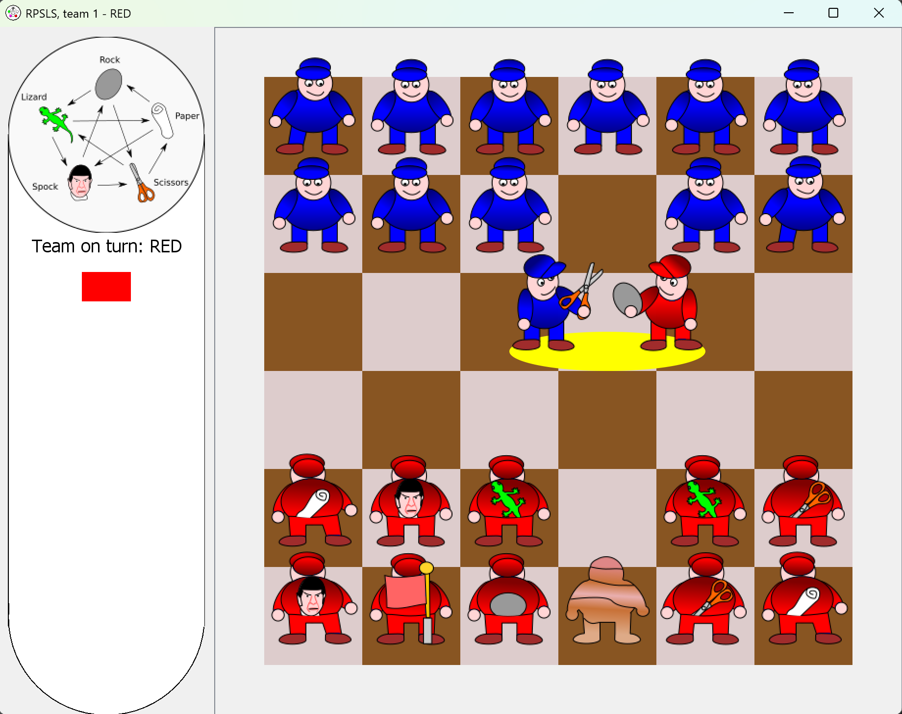 Rock-paper-scissors with extension to lizard and spock. Game known form old ICQ 5 with new options. Can be played via network (LAN).